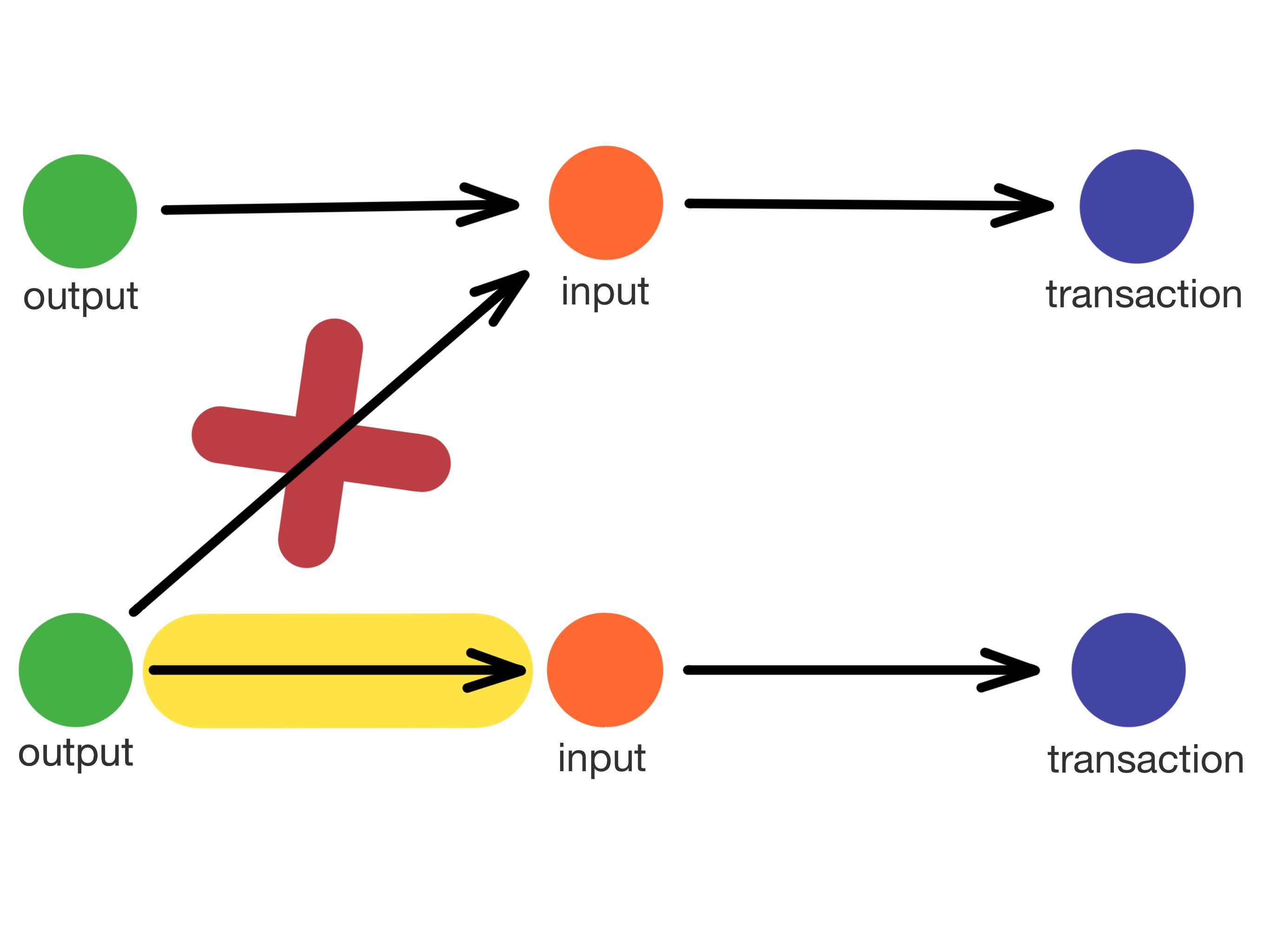 | Outputs can only be spend a single time. Remove the other edge. |